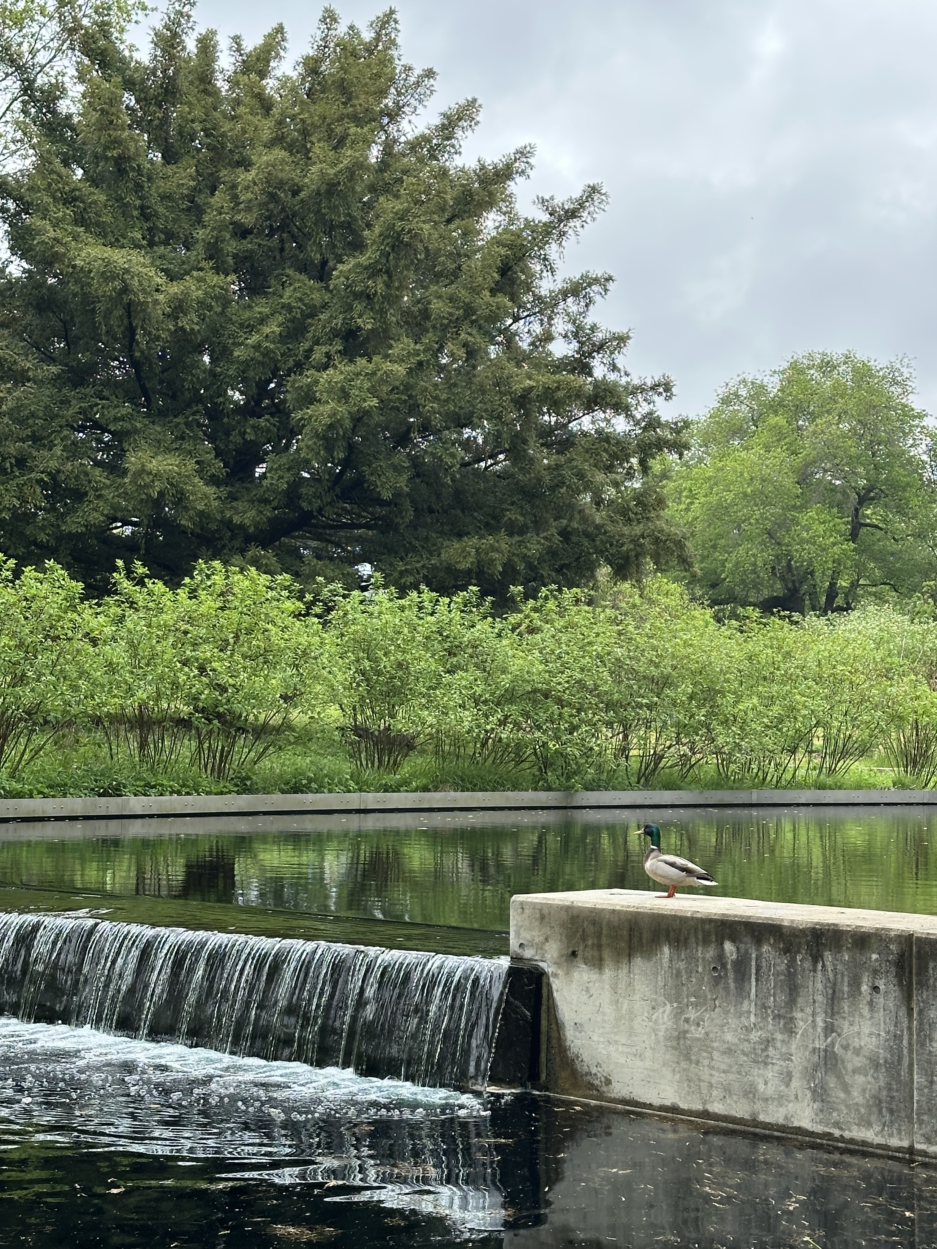 We ended our tour at the Native Plant Garden where we saw a duck sitting by the water fountain. It was so still and steady like an object that I had to come up close to check if it was real—indeed it was, alive and wondrous. Steady as this bird, rocks, and the rain. It reminded me of a song by Dolly Parton in her Bluegrass album The Grass is Blue that goes, “Steady as the rain they fall/ And my tears keep falling down / As steady the rain.” Ingenious. I highly recommend the whole album, one of my all-time favorites by Dolly. [Cue angelic chorus with light beams shooting out from Dolly the Saint]