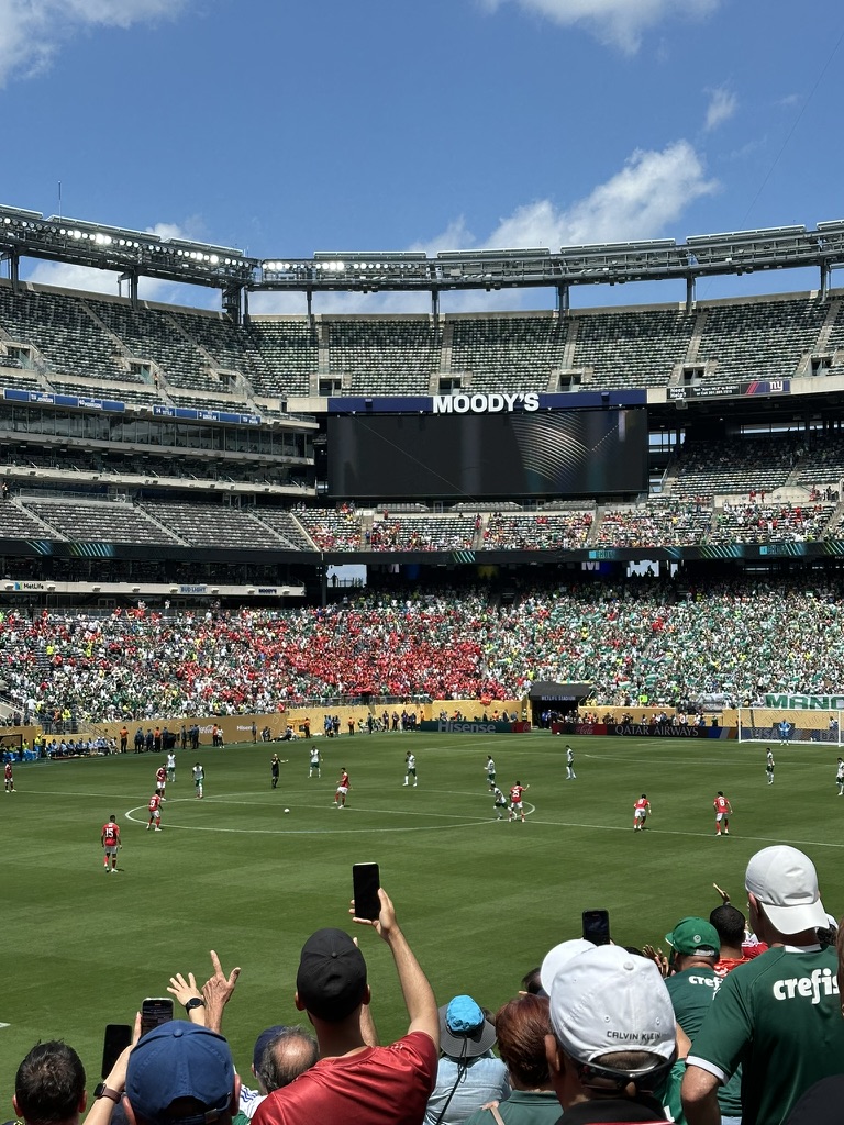 On Juneteenth, my friend invited me and her parents to a soccer game between Brazil’s Palmeiras and Egypt’s Al Ahly in New Jersey. It was my first time at MetLife and my first World Cup game. It was scorching–I got sunburnt. Midway through the second half, the game had to pause due to thunderstorms, so we sheltered in the hallways until it was cleared for safety. Thanks to our support, the Palmeiras won by 2-0 (they are leading the group as I write this). As we were walking out of the stadium, the clouds unleashed all the rains they were holding onto–they fell heavily, leaving us completely drenched (I thought of Hilary Duff’s Come Clean music video). I did not appreciate sitting on the bus back to the city with a wet bottom and underwear.